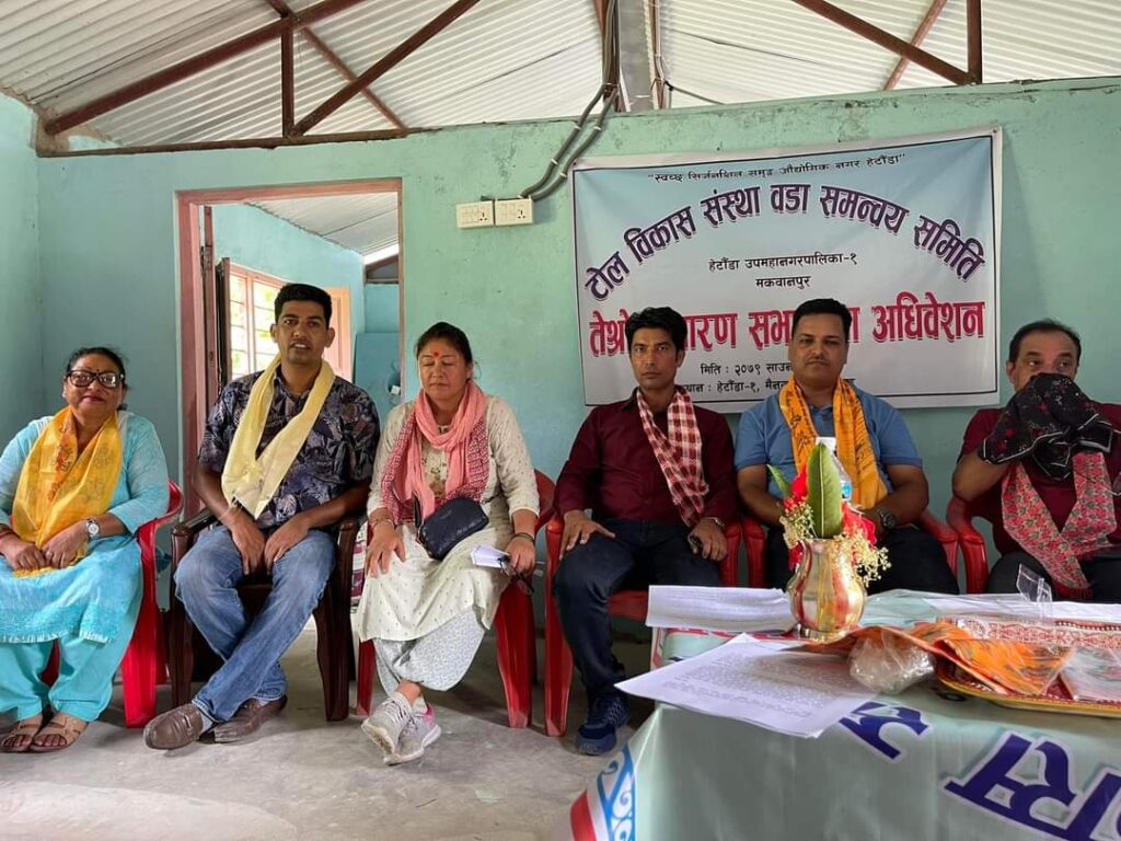 हेटौंडा / टाेल विकास संस्था वडा समन्वय समिति हेटौंडा-१ तेश्रो साधारणसभा तथा अधिवेशनबाट रुपा ढुंगानाको अध्यक्षतामा नयाँ कार्यसमिती गठन भएको छ ।