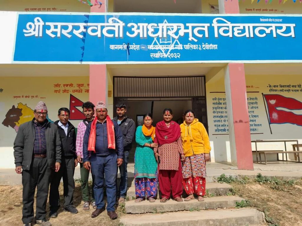 २१ माघ,मक्रान्चुली- मकवानपुरगढी गाउँपालिका वडा नं ३ देविडाँडामा रहेको सरस्वती आधारभुत विद्यालयको व्यवस्थापन समितिको अध्यक्षमा भोलानाथ दाहाल चयन भएका छन् ।
