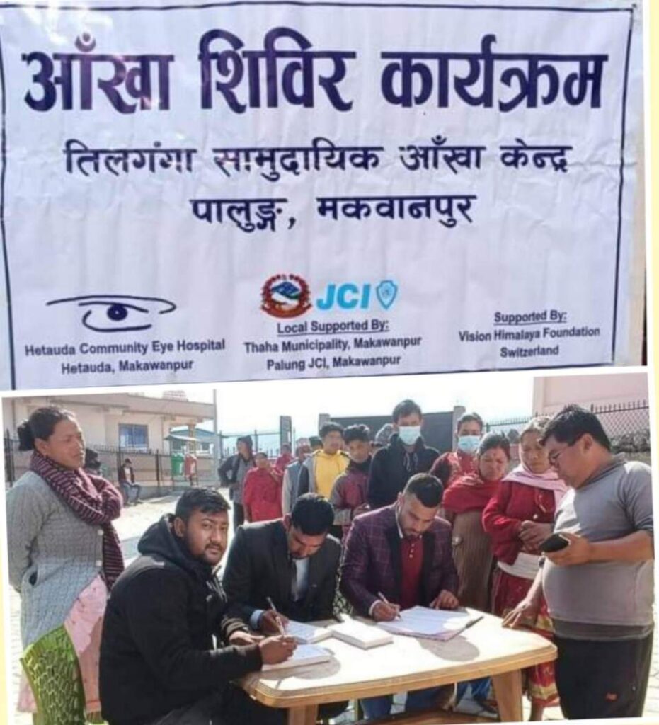 थाहा नगर – हेटौंडा सामुदायिक आँखा अस्पतालको आयोजनामा तिलगंगा सामुदायिक आँखा अस्पताल पालुङमा निशुल्क आँखा सिबिरको सुरु भएको छ ।