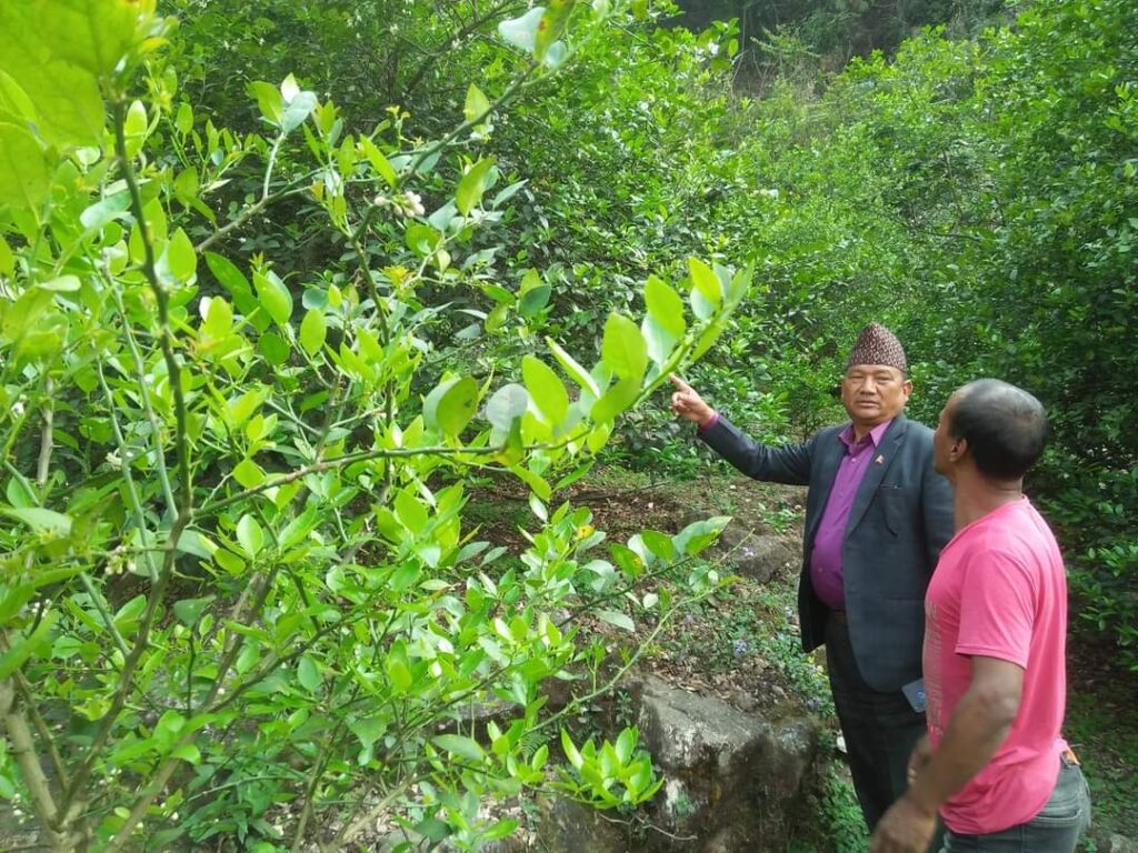 गाउँपालिका अध्यक्ष स्याङ्तानबाट कागती खेतीको अवलोकन