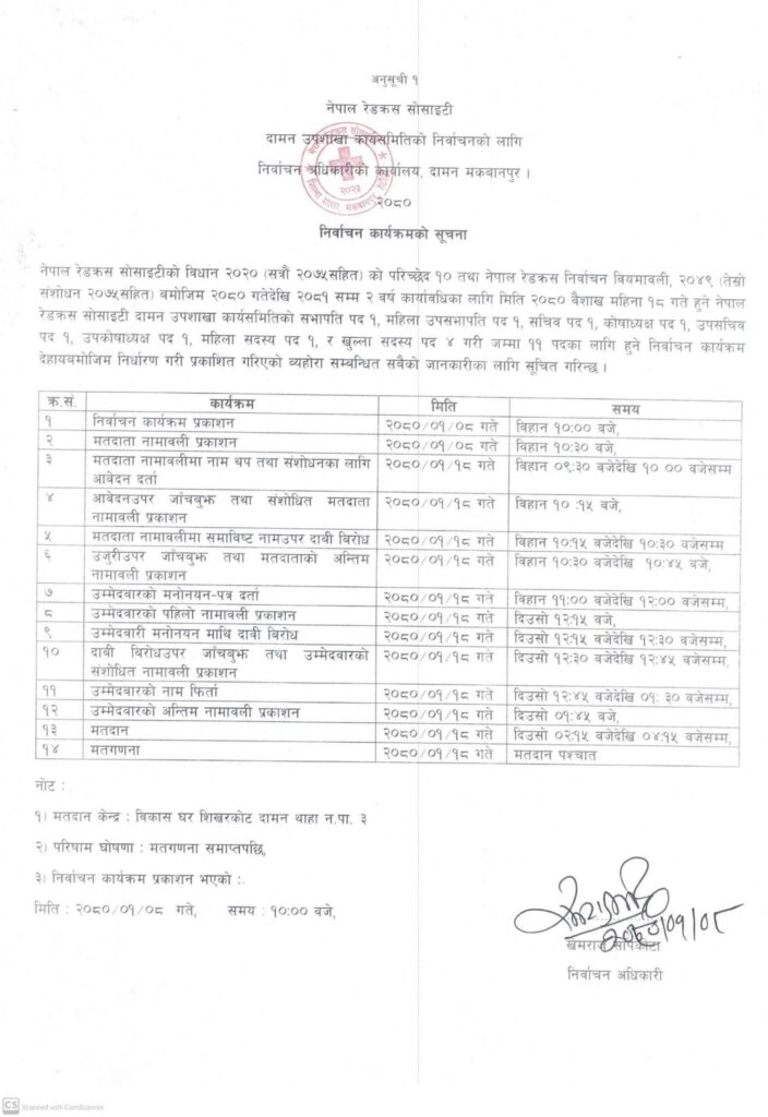 रेडक्रस उपशाखा दामनको निर्वाचन कार्यक्रम सार्वजनिक