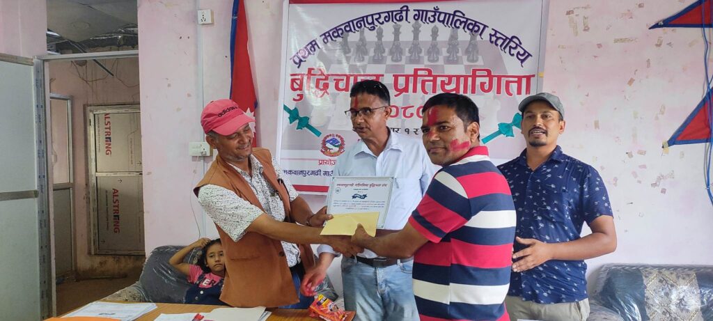 मकवानपुरगाउँपालिका वडा नम्बर ३ का अध्यक्ष भागवत घिमिरेको प्रमुख अतिथ्यता र मकवानपुरगढी बुद्धिचाल संघका अध्यक्ष उद्धव प्रसाद सापकोटाको अध्यक्षतामा कार्यक्रम भएको हो । उक्त अवसरमा वडा अध्यक्ष भागबत घिमिरेले प्रतियोगितामा बिजयी भएकालाई बधाई दिदै प्रतियोगितालाई आगामी बर्ष पनि निरन्तरता दिन सहयोग गर्ने प्रतिबद्धता जनाएका छन् । प्रतियोगिता संचालन गर्न ३ नम्बर वडा कार्यालयले ५० हजार रुपैया आर्थिक सहयोग गरेको थियो ।