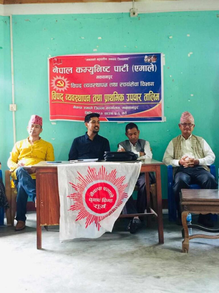 नेकपा एमाले निकट सम्पुर्ण जनवर्गिय संगठनका प्रतिनिधीहरुको सहभागीता रहेको कार्यक्रम विपद् व्यवस्थापन् तथा स्वयम् सेवा विभाग मकवानपुरका प्रमुख शिवहरि दाहालको अध्यक्षतामा भएको हो ।