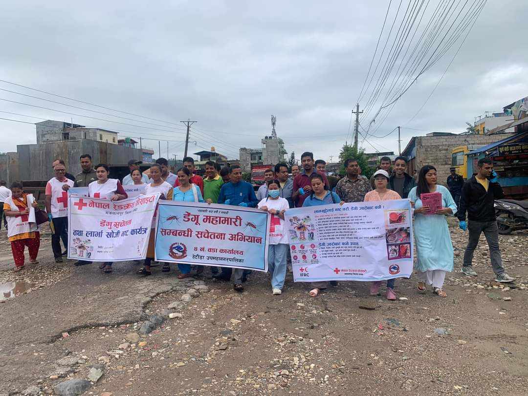 हेटौंडा । हेटौंडा उपमहानगरपालिकाको बजार क्षेत्रमा डेंगु रोग फैलाउने लामखुट्टेको लार्भाको खोजी र नष्ट गर्ने अभियान थालिएको छ । डेंगुको महामारी नियन्त्रण र रोग रोकथाम गर्ने उद्देश्यले लामखुट्टेको लार्भा खोजी र नष्ट गर्ने अभियान थालिएको हो । गर्मी याम र वर्षातको सुरुवातसँगै यो रोगबाट मान्छे बिरामी पर्न थालेका छन् ।