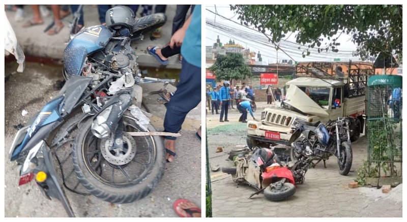 बिहान जडीबुटीबाट पेप्सीकोलातर्फ जाँदै गरेको बा ३ ख ४८४८ नम्बरको बसले बाग्मती प्रदेश–०२–०४१ प ४८३८ नम्बरको मोटरसाइकल तथा बाग्मती प्रदेश ०२–०३७ प ५३ ११ नम्बरको स्कुटर र बा ६ च ५३४२ नम्बरको जीपलाई ठक्कर दिएको प्रहरीले जनाएको छ ।