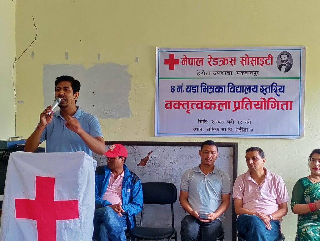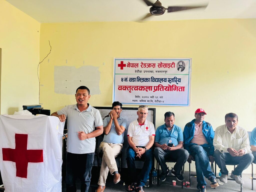 नेपाल रेडक्रसको स्थापना दिवसमा हेटौंडा उपशाखाद्वारा वक्तृत्वकला प्रतियोगिताको आयोजना