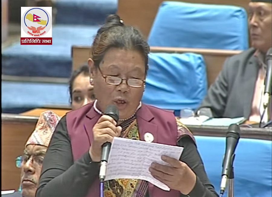 ‘सम्मानित सदनलाई सार्वभौम र गरिमामय बनाउने हो भने उहाँहरुले बोल्दा पनि समय निर्धारण गर्न आवश्यक छ । सभामुखको ध्यानाकर्षण होस्’ उनले भनिन् ।