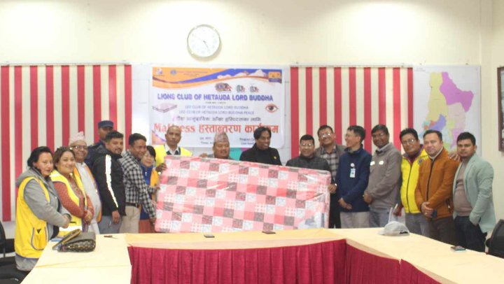 हेटौंडा, २४ माघ/लायन्स क्लव अफ हेटौंडा लर्ड बुद्धले हेटौंडा सामुदायिक आँखा अस्पताललाई १७ थान म्याट्रेस हस्तान्तरण गरेको छ । क्लबको सामाजिक उत्तरदायित्व कार्यक्रम अन्तरगत बुधबार अस्पतालमा एक कार्यक्रम गरि म्याट्रेस बितरण गरिएको लायन्स क्लव ईन्टरनेशनल डिस्ट्रिक्ट ३२५ एस नेपालका एओजि गौतम केसीले बताउनुभयो ।