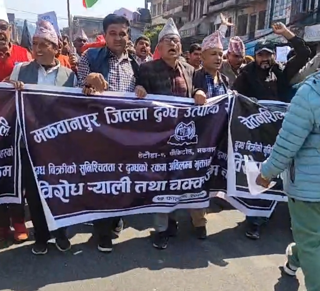 यसैबीच मकवानपुर जिल्ला दुग्ध उत्पादक सहकारी संघको संयोजनमा मकवानपुरमा रहेका दुग्ध उत्पादक सहकारी संस्थामा आवद्ध किसानहरूले बिहीबार बागमती प्रदेशको राजधानी हेटौंडामा विरोध प्रदर्शन गरेका छन् ।